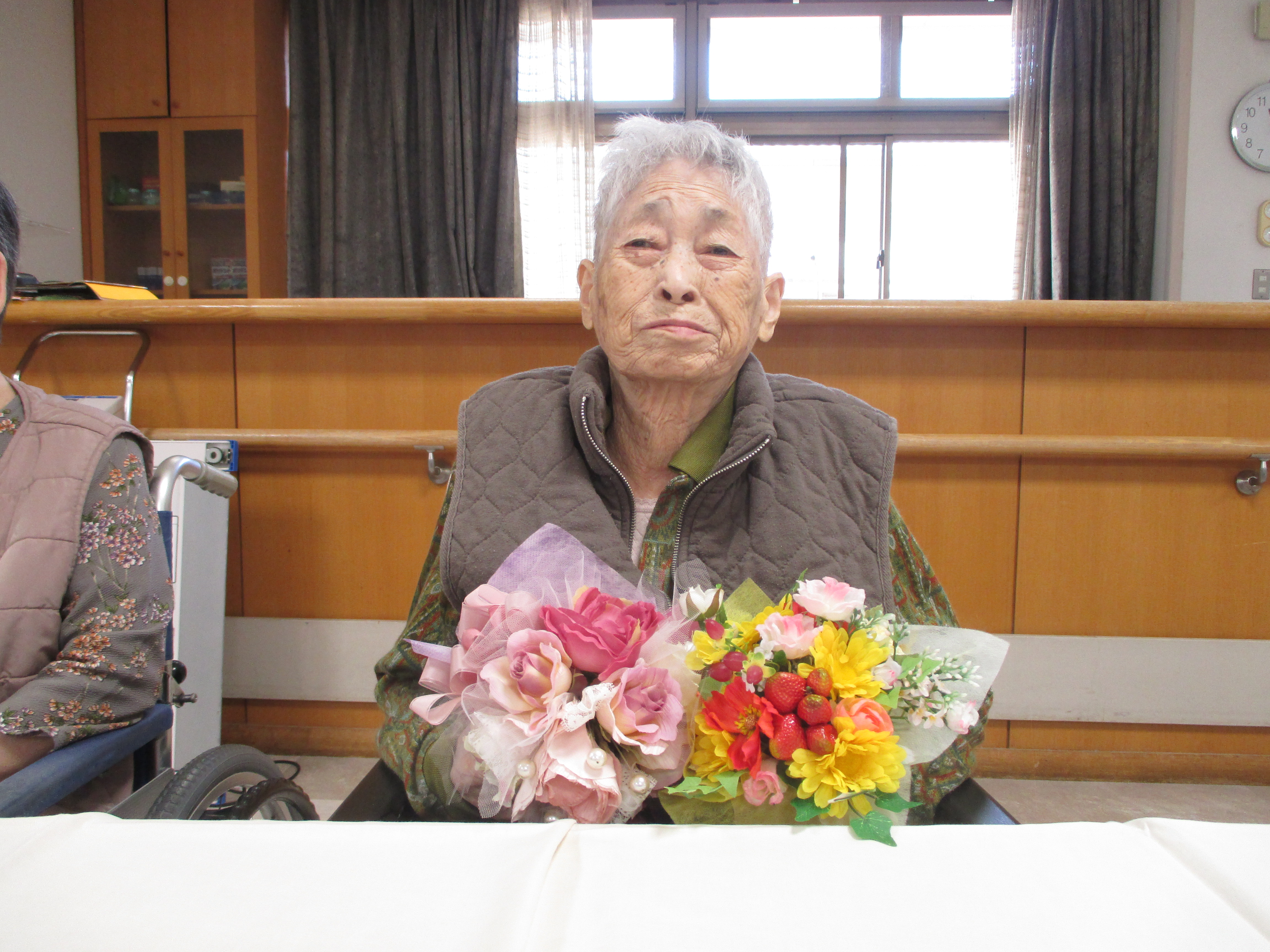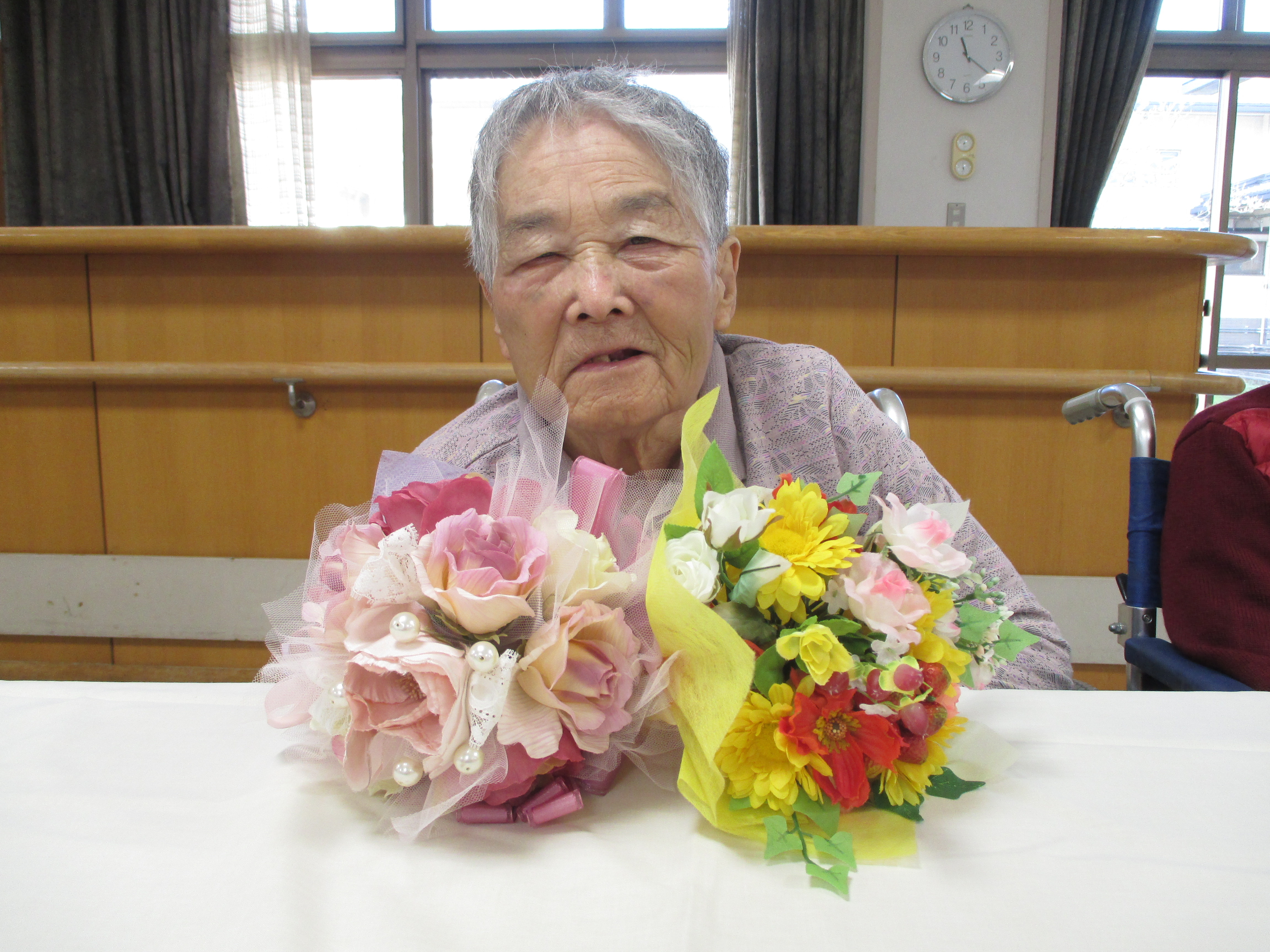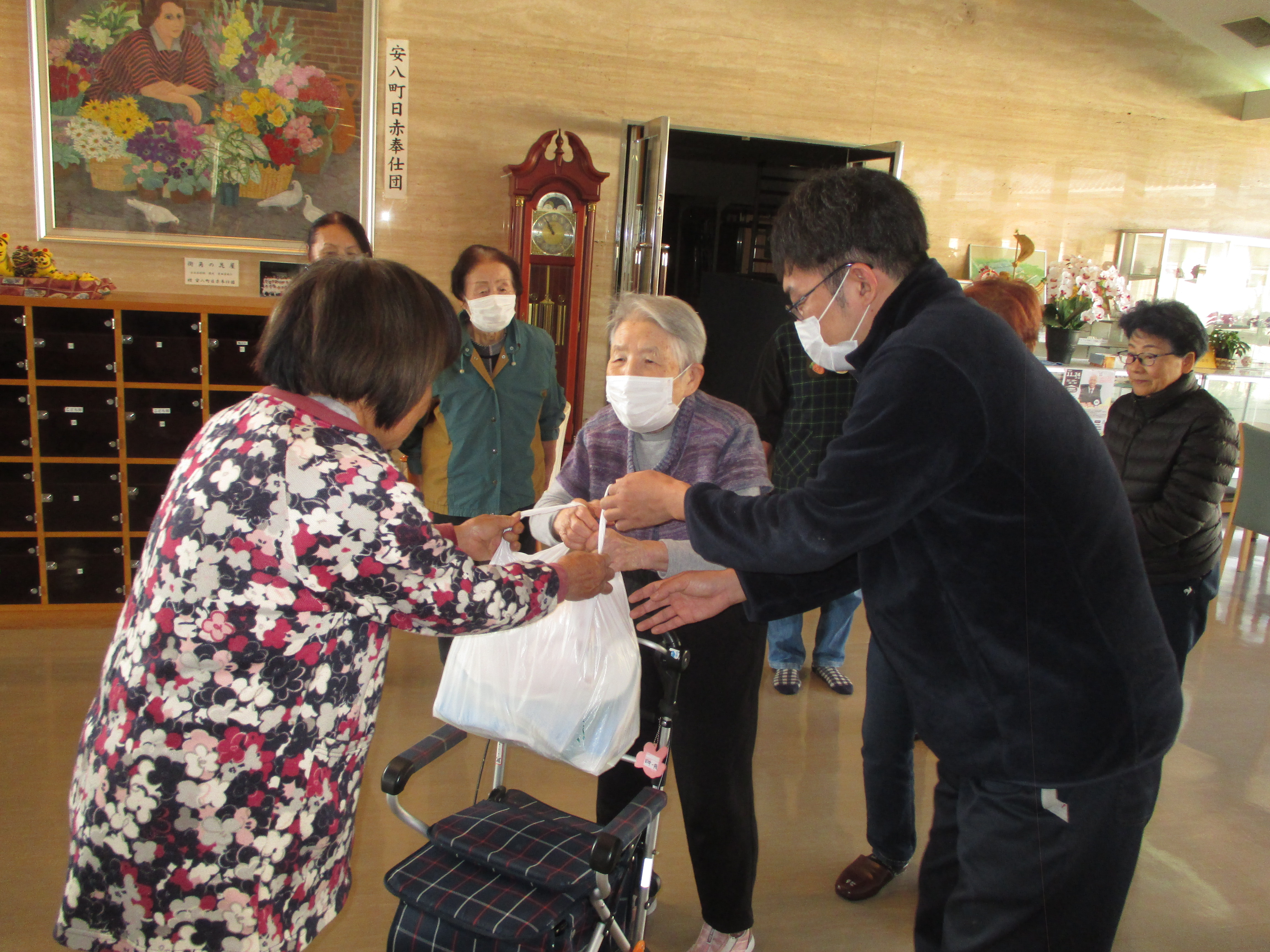 清掃終了後、助けあい組織の皆様から雑巾を贈呈いただきましたので、入所者の方に代表で受け取ってもらいました!