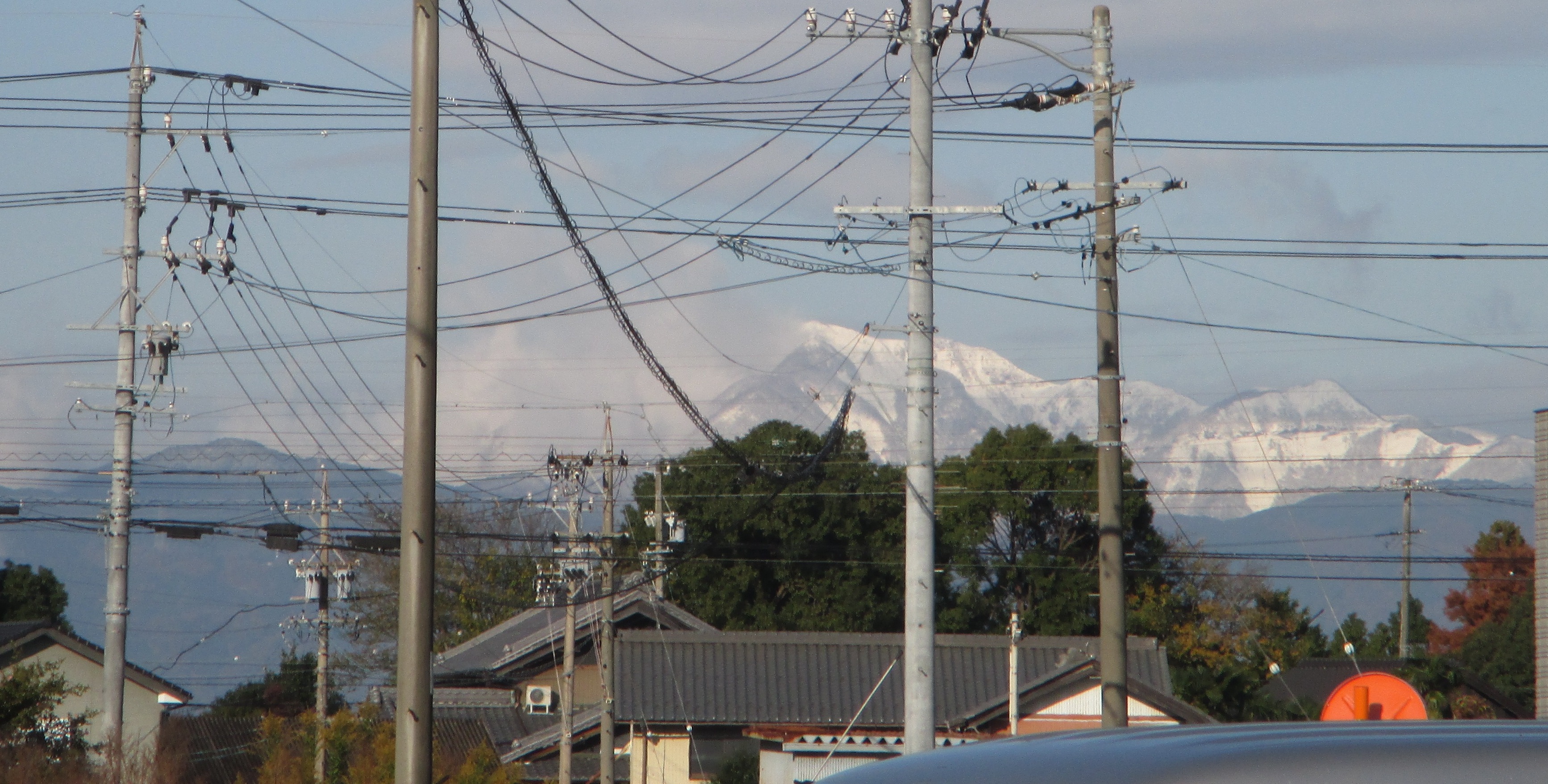 雲の切れ間から雪化粧をした伊吹山が見えました。